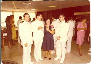 También fueron varios, pero en primer año, me designaron edecán para el reinado del mar en Santa Marta: designaron 12 pero al final solamente iban 10 o se a que antes de salir para Santa Marta eliminaban a dos. Alistamos todos nuestros uniformes, el uniforme de viaje era kaki y los kakis mas pulidos de la escuela eran del “gringo” Graham., le tomé “prestado”! uno, sin consultarle lógicamente, solamente contando con la colaboración de Iluminada, mi lavandera de confianza, pulí mis zapatos negros con embolada china y esa noche el oficial de guardia que era mi teniente Pipi García, nos clavó una hora trote con guardiamarinas a la cabeza a excepción del Brigadier mayor Héctor Porras F. Hasta ahí todo bien, pero estando en pleno trote se vino un aguacero de padre y señor mío, que dejo mi embolada china acabada. Terminado el trote y después de recogida me puse a ver como era que le sacaba esa humedad interna y externa a mis zapatos para que pasaran la revista. Por andar en esas y alistando el equipo llegamos tarde algunos de los futuros edecanes a la formación del desayuno y el brigadier mayor sin dudarlo, nos puso a trotar durante el desayuno, o sea a la formación de eliminación llegué con los zapatos rucios y hecho una sopa. Sin embargo clasifiqué. Nos fuimos a Santa Marta al mando del “Bambino” Julián Sánchez (q.ep.d) con quien muchos años después nos encontraríamos en Korea en la supervisión de construcción de los dos últimos buques que hizo la flota Mercante Grancolombiana en los astilleros De Hyundai Heavy Industries. Esa comisión fue muy grata, pues apenas a los seis (6) meses de haber ingresado, ya nos vistieron de camisa y palas, con carro asignado y después de escuchar a diario que no éramos mas que reclutas pecuecos sin voz ni voto sobre la tierra, de pronto pasar a escuchar, como me tocó a mi, que fui asignado a la virreina nacional de la belleza, samaria ella, “ahora estoy tranquilo porque mi hija esta en manos de un cadete naval” era para morirse de la risa.