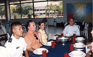 A continuación se hizo un recorrido por todas las instalaciones de la Escuela, observando con alegrÃa la positiva transformación de su planta fÃsica y la presencia de personal femenino como interesante participación de la mujer colombiana en la también formación NAVAL; previamente se tomaron fotografÃas de los participantes con el fondo del recordado mástil y del reloj astronómico diseñado por el arquitecto naval GUILLERMO FONSECA TRUQUE; antes del almuerzo, frente al comedor de cadetes en sencilla, emotiva e imponente ceremonia, enmarcada dentro del ceremonial marÃtimo, el Batallón de Cadetes desfiló ante los oficiales del Contingente 29 , con la representación y participación de nuestro compañero HUGO SANCHEZ GRANADOS quien alcanzó el más alto nivel en el escalafón naval; culminamos nuestra visita en las instalaciones del comedor de cadetes, departiendo con los cadetes navales el frugal almuerzo y en nuestra condición de comandantes de mesa ya no para nueve personas si no para diez. Protocolizada la toma del segundo golpe (llamado asà en el argot popular) regresamos a abordar el bus dispuesto para el transporte y los otros carros particulares ya dispuestos. La tarde quedo libre para nuestras actividades personales, familiares y ocupaciones y preparándonos para asistir a las 20:00 horas al siguiente encuentro en la Terraza de la Iguana del Club Naval.