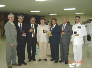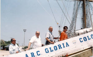 Al dÃa siguiente sábado 3 de marzo y siendo las 11:00 horas se inicia el programa de la visita a nuestro buque escuela e insignia ARC “GLORIAâ€? el BERGANTIN BARCA que con orgullo ha dado varias vueltas al mundo llevando sus velas y su bandera como nuestra Patria en los mares “De COLOMBIA mensajero surcando el mundo enteroâ€? con sus 1.300 toneladas de desplazamiento, tremenda emoción al ser recibidos en el portalón por el señor Almirante GUILLERMO BARRERA HURTADO y señora Ana Maria Gutiérrez de Piñeres de Barrera, Comandante de la Armada Nacional y anfitrión , el señor Contralmirante GABRIEL ARANGO BACCI , la guardia de cubierta en cabeza del señor Capitán de NavÃo ERNESTO DURAN GONZALEZ Comandante del ARC Gloria oriundo de San Gil donde el rÃo PONCE lo indujo a su espÃritu marinero; después de haber departido unos aperitivos en la impecable cámara de oficiales, pasamos a manteles en la toldilla en popa, donde transcurrió el evento con la presencia de los altos mandos y los oficiales vinculados como tripulantes del majestuoso buque con las palabras de saludo protocolarias e intercaladas, acto emocionante donde nos fue obsequiado el bello afiche del ARC GLORIA, la gorra de mar, un anillo salvavidas en miniatura, un prendedor dorado del mismo ARC GLORIA enhorabuena y nuestros agradecimientos dirigidos a quienes nos brindaron tan especial recepción. Seguidamente, fuimos invitados por el compañero GILBERTO RONCANCIO para que visitáramos el submarino ARC PIJAO surto en el puerto y junto con las señoras tuvimos oportunidad de recibir a bordo las instrucciones de su funcionamiento y una vez desembarcamos, tomamos la tarde libre, en mi caso particular tuve la oportunidad de celebrar a mi nieto Cartagenero sus dos primero años de vida y de permanencia en el planeta TIERRA. El reloj no perdona e iniciamos alistamiento para dar cumplimiento a la clausura en el Salón Almirante Piedrahita del Club Naval. Cerrando con “broche de oroâ€? el evento, en un ambiente muy especial y con el ingrediente adicional de haber compartido con invitados especiales de nuestros afectos y de grata recordación en 1957 y subsiguientes, entre otros Sr. Capitán AUGUSTO VIDALES, Sr. Capitán CARLOS BARRAZA, el médico ginecólogo GUILLERMO DOMINGUEZ, allà se hizo la proyección de parte del CD el cual debidamente editado lo recibiremos próximamente; se hizo entrega de las bien diseñadas placas recordatorias cuya mención hice al iniciar mi crónica (versión libre y espontánea) , lo mismo que del tradicional PITO MARINERO dorado , con las inscripciones de nuestro encuentro y el nombre de nuestras respetables señoras; a continuación participó nuestro compañero de nacionalidad estadounidense ROBERT DHU DE LA GARZA JHONSON quien con su gracia, donaire y peculiar estilo, nos proporcionó cerca de 20 minutos relatando sus experiencias vividas en nuestra Escuela Naval desde su misma admisión, sus peripecias al ascender a Guardiamarina, su situación como Oficial Honorario, su ingreso a la U.S. Navy, su permanencia en la Academia Naval en el estado de Maryland (donde curiosamente tuvo la agradable sorpresa de ser visitado en pleno invierno y a las 03:00 horas, con una temperatura de varios grados bajo cero y una capa de nieve superior a 70 centÃmetros en el mes de diciembre año 1964 por sus compañeros BERMUDEZ Y RUBIO) sus años en calidad de Capitán de Buques Petroleros y de Suministros y Apoyo en Vietnam y en el Golfo Pérsico y finalmente su destacada misión de Piloto Práctico en el CANAL DE PANAMA y acercándose ya el proceso de obtener su segunda jubilación; su conversatorio fue aplaudido jubilosamente y mas aun cuando se reafirmó en su amor por COLOMBIA y en especial por nuestra Armada Nacional con la Escuela Naval en primera lÃnea.