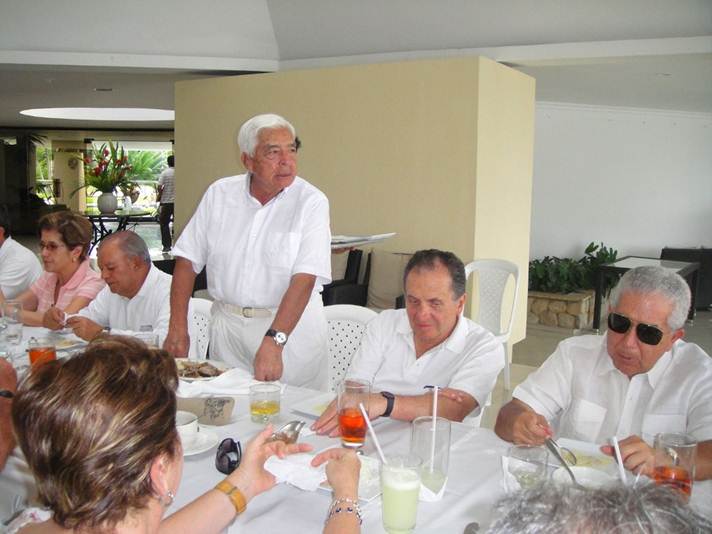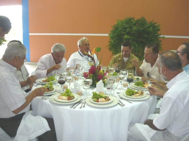 Almuerzo ofrecido por la sociedad portuaria, en esta mesa Sr. Almirante Guillermo Uribe, director de la ENAP cuando entramos 1976, Alfonso Salas, comandante de Batallón en 1976, el Capitan Antonio Espitia Kike Millán, entre otros.