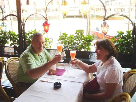 Jorge brindando con su jefe en Venecia