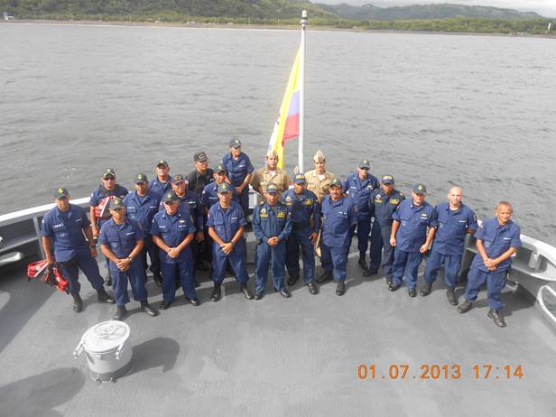 TK José Alonso Escobar, el Cónsul de Colombia en Curacao, Ingeniero Mercante Antonio Arango L, CN Carlos Escamilla y CRIM Carlos Aguilar Ramírez.