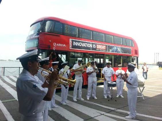 Comienza la aventura. Esta es la primera foto oficial del BusGREAT en Colombia, iniciando su recorrido en Cartagena, aquí con la banda de la Fuerza Naval del Caribe.