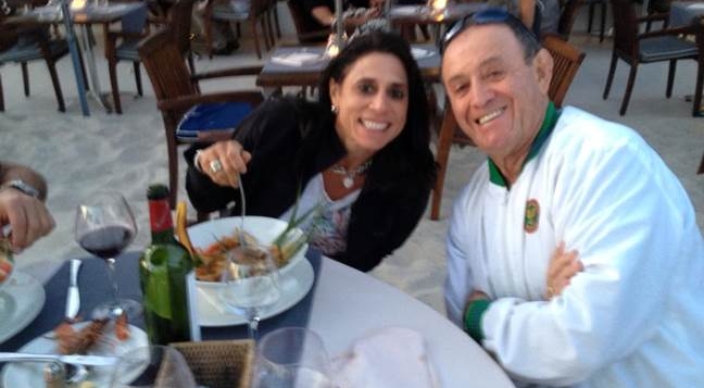 Guillermo Monroy/ 26-052, con su hija Bertha L., disfrutando un exquisito almuerzo cerca de Saint-Paul-de-Vence, Provence-Alpes-Cote d'Azur