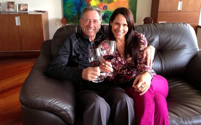 El muy apreciado CR IM Benjamín Enrique Urrea Rabe brindando con su linda hija Patricia