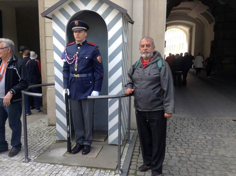 Recordando sus épocas de Cadete, el BG IM Chucho Castañeda, firmes a la entrada del palacio de Gobierno en Praga