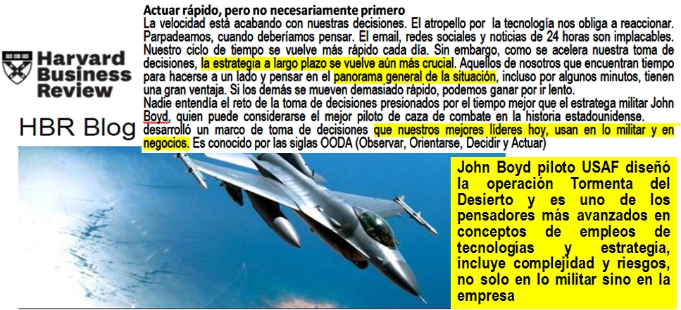 Podemos establecer que si a nivel ARC hoy cada tema es visto como eventos sin relación, es evidente que ni siquiera la historia ha recibido la importancia que merece y derivar lecciones no es posible. Una visión holística y sistémica, evitaría repetir errores y sobre todo frente a lo complejo, que es incierto y nada se puede predecir, permitiría lo único que es posible: manejo y reducción de riesgos, con procesos estructurados que sería y ha debido ser el manejo estratégico del caso de Coquivacoa 1987. Pues en mi manejo como Comandante del ARC INDEPENDIENTE en las acciones de mi buque sí utilicé conceptos de complejidad con LOOPS de BOYD, cuyo éxito señalan autores en sus libros.