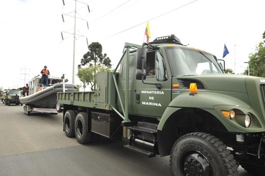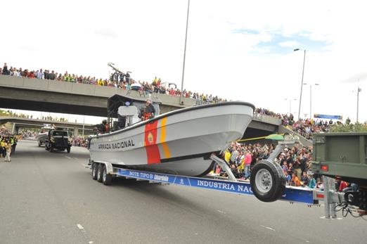 Durante el desfile sé efectuó una muestra del componente fluvial, que amplió su cobertura en un 80%, logrando desarrollar operaciones hasta en 14.641 kilómetros de los ríos principales y afluentes, de los cuales más de nueve mil kilómetros cuentan hoy con presencia permanente del componente fluvial de la Armada Nacional. Esta capacidad se ve representada por dos botes del Elemento de Combate Fluvial Pesado, que se caracteriza por su alta capacidad de fuego, versatilidad y maniobrabilidad para desarrollar operaciones fluviales de control y soberanía en las aguas de los ríos colombianos, combatiendo la ilegalidad, remolcados por vehículos tipo HMMWV, orgánicos del Batallón de Movilidad de la Infantería de Marina.
