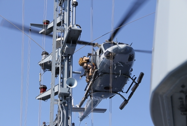Empieza el descenso de un tripulante (Fuente: 2015 Bundeswehr / Schnellboot „Hyäne“)