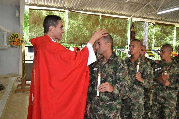 En una especial ceremonia religiosa realizada en la Capilla de la Base de Entrenamiento de Infantería de Marina, en Coveñas, Sucre, 157 jóvenes aspirantes a infantes de marina regulares recibieron los sacramentos de Bautismo, Primera Comunión y Confirmación.