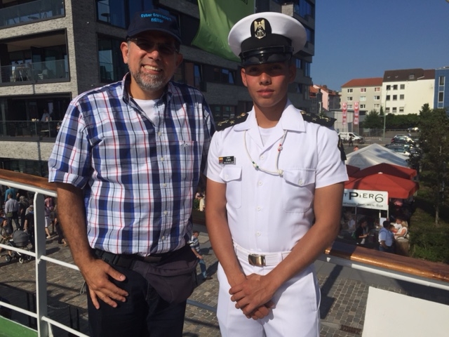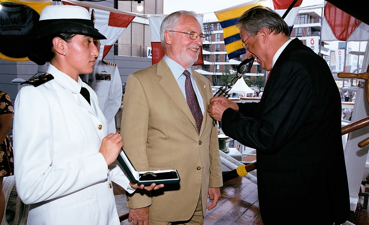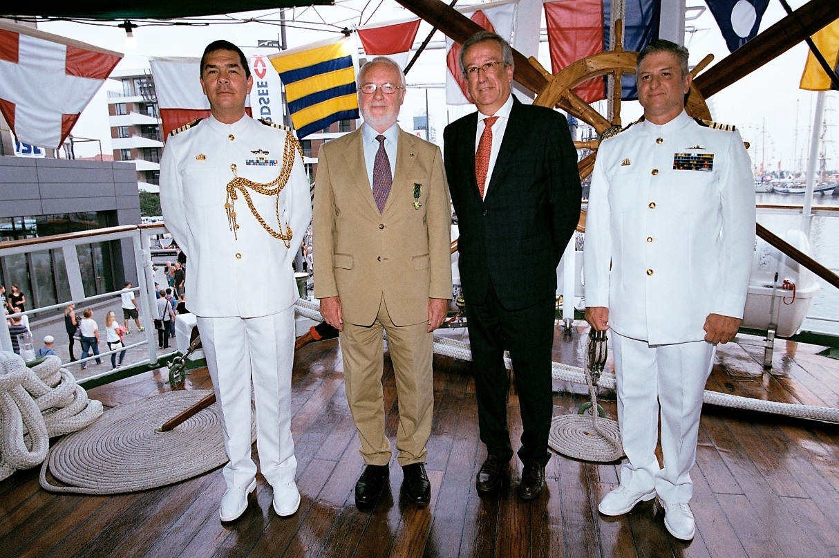 Comandante del ARC Gloria CN Reynaldo ESPINOSA HEIDMANN y señora Elizabeth SAIEH JALUBE, Sr. Embajador de Colombia ante Alemania Sr. Juan MAYR MALDONADO y Señora, Sr. Consul Honorario de Colombia en Bremen Klaus MÜLLER-LEIENDECKER y Sr. Heide MÜLLER-LEIENDECKER