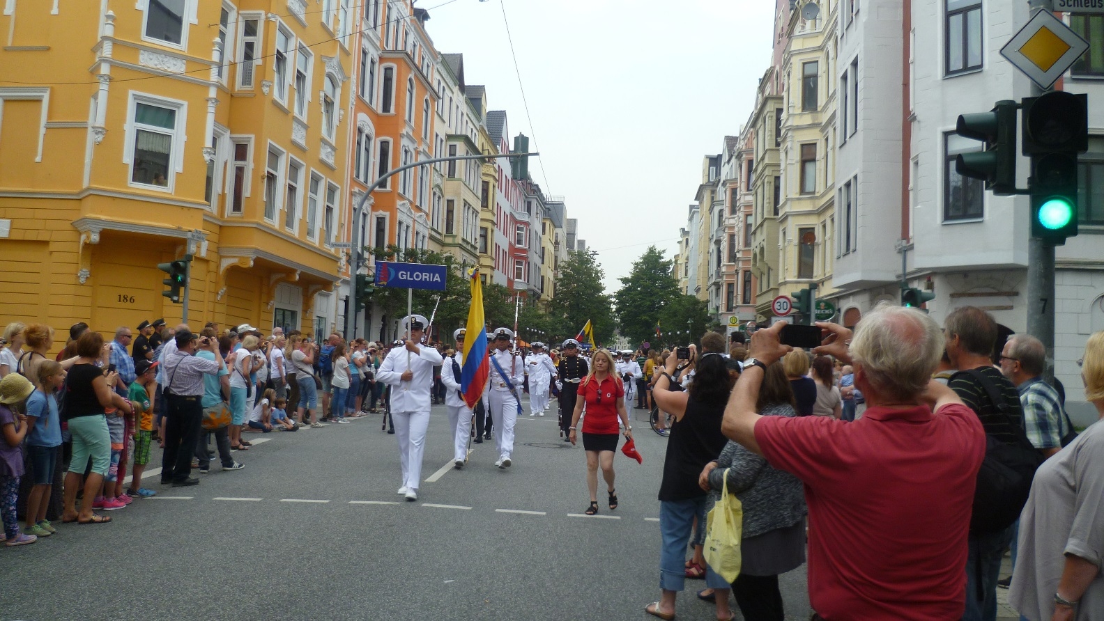 Desfile de la tripulación del ARC Gloria por las calles de Bremerhaven