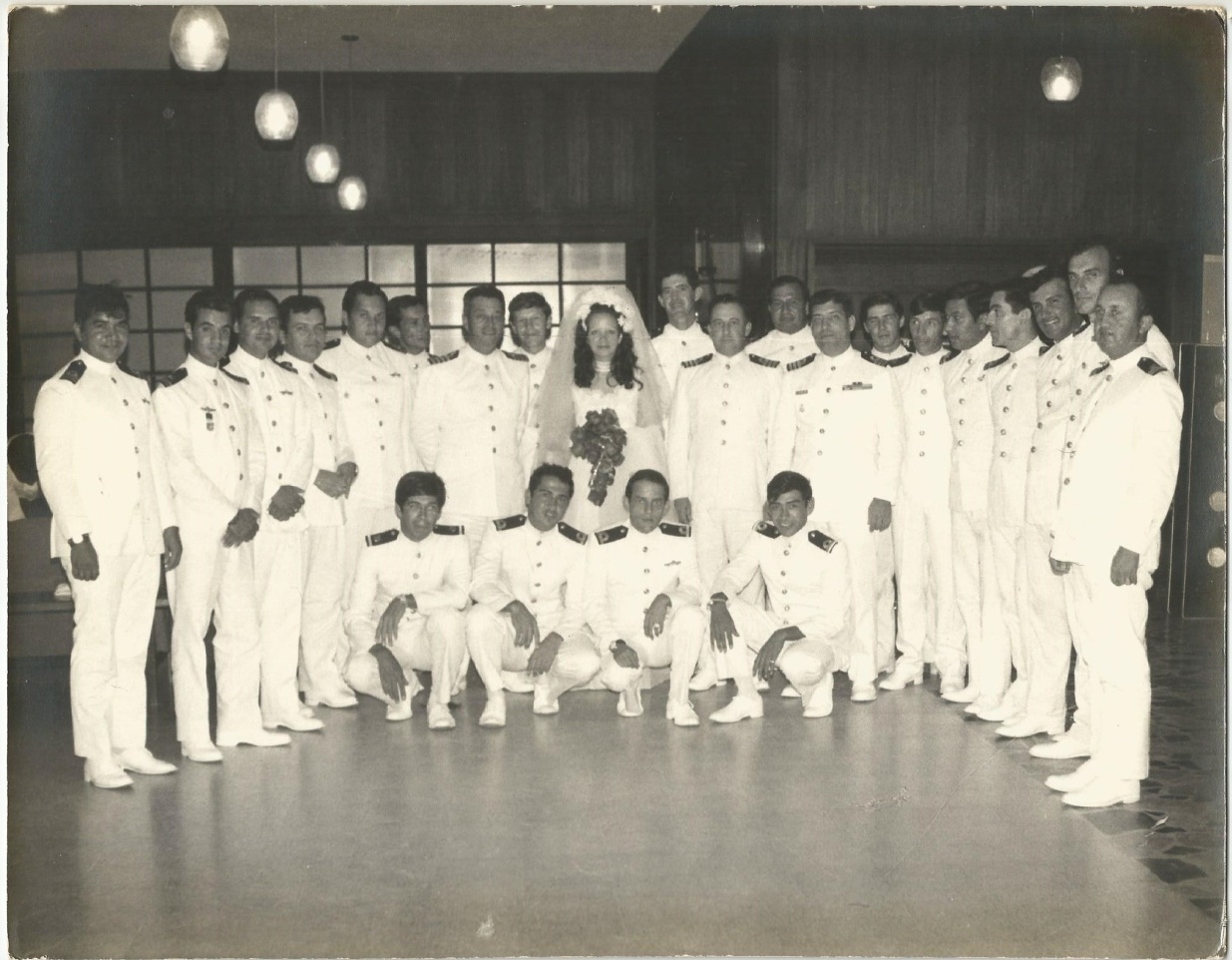 El artista principal del evento, el suscrito, no está en la foto por tradición ARC. Foto del 7 de diciembre de 1974 tomada en el segundo piso del club naval de oficiales