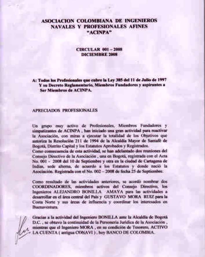 favor publicar la circular 001-2008 Diciembre 2008 emitida por nuestro