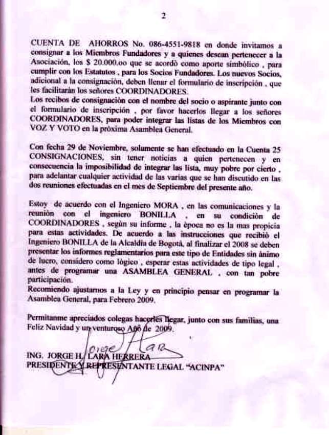 presidente y representante Legal JORGE LARA HERRERA que aclara la fecha para