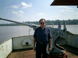Bernal en la proa del cañonero Cartagena, unidad que tuvo significativa y