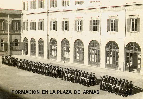 Acostumbrados como estábamos a nuestro fusil de dotación de la Escuela Naval de Cartagena , quedamos sorprendidos cuando nos entregaron un “moschetto” (arcabuz) que utilizaríamos durante los desfiles y los entrenamientos de tipo militar : era más pequeño , más liviano , y menos moderno que el nuestro . Los ejercicios navales-militares no implicaban la intensidad física de los de Cartagena ; un día le dimos una demostración a nuestro oficial de sección , incluyendo tendidas , flexiones , y vueltas al bergantín : en lugar de un gesto de sorpresa o admiración en la cara del oficial , pudimos adivinar una sonrisa de benevolente simpatía . Los castigos a que estábamos acostumbrados , tales como vueltas al mástil , horas de plantón , horas de trote , etc., aquí se convertían en “giri di barra”, es decir trepadas a la cofa más alta del bergantín del patio de armas ; el número de trepadas dependía de la gravedad de la falta y del genio del Oficial que ordenaba el castigo ; no pude evitar una reflexión sobre la eficacia y utilidad del castigo en relación con el entrenamiento para los cruceros en el buque escuela a vela