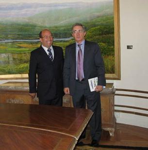 Imágenes del "Mural Camino a Honda" en Madrid -España- en la sede de Embajada. El Maestro Ortiz con nuestro querido presidente Uribe en su último viaje a Madrid y con el CALM Rodolfo Amaya / 74-006. |