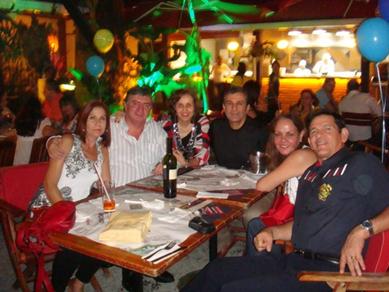 Cena fraternal en Cali el pasado 3 de julio, con motivo de la celebración de los 35 años de graduados en la Escuela Naval. En su orden: Gladys de Orozco, José Guillermo Orozco A., Erika de Ortiz, Roberto Ventura C., María Constanza de Ventura y Alfredo Ortiz C |