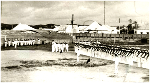 Ya estaba trabajando la misión inglesa y estaban fondeados en la bahÃa los destructores MC Caldas y MC Antioquia, adquiridos por el gobierno colombiano para la emergencia del conflicto con el Perú. Estos buques, como se sabe venÃan totalmente tripulados por ingleses que habÃa contratado el gobierno, desde su comandante hasta el último marinero. Parte principalÃsima de esta misión naval fue el personal que asignaron para la nueva Escuela Naval, cuyo Director fue el Capitán de Corbeta Ralph Binney, comandante de los cadetes y un teniente inglés de apellido Sharktey. Después, con el tiempo, los fueron reemplazando oficiales colombianos, algunos que ya habÃan sido traslados al escalafón naval y otros venidos directamente del Ejército. Entonces fueron remplazando al personal inglés, especialmente en lo que se refiere a la Escuela Naval.