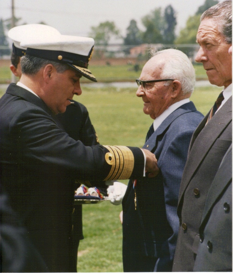 El Sr. VA Guillermo Uribe Peláez impone la Medalla “Rafael Reyesâ€? al CN Rafael DÃaz Russi socio de Acore por su excelente colaboración con la asociación.
