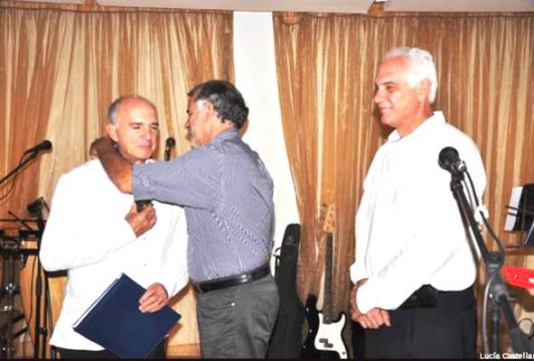 El gobernador Eduardo Verano le impone la distinción, lo acompaña Eduardo Jesurun