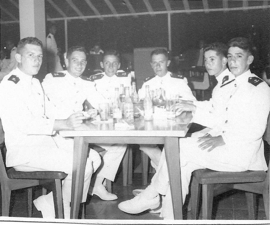 (1) Fiesta en el Club San Fernando de Cali; diciembre de 1960. No todos han tenido suerte; de izquierda a derecha: Arturo Vásquez: (CN) murió al caer de un bus; Jorge Granados: (Ex cadete) Murió como militante del ELN; Alberto Moreno y Rafael Varón (Ex cadetes, por ahà andan); Gabriel Corredor: (Ex cadete) murió piloteando su avioneta y el entrevistado, gracias a Dios, vivo y en libertad.