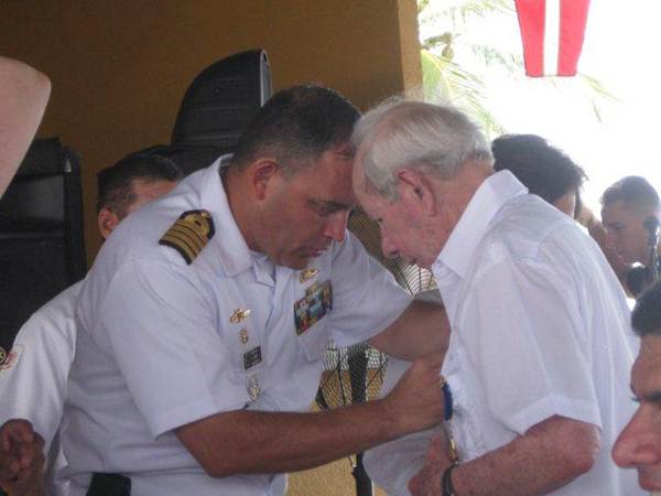 El Coronel IM Ricardo Vargas, impone el distintivo de la Escuela de Formación de InfanterÃa de Marina al TCIM Pedro Jose Gonzalez, Ex Director de la Escuela de Suboficiales hace 65 años.