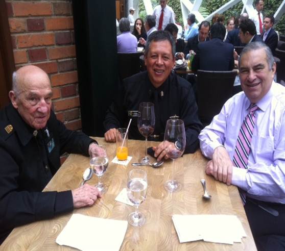 Con el fin de tener buena recuperación ósea, el Sr Capitán de NavÃo Luis Felipe Mantilla / 13-063 y el Economista Jorge Serpa / 38-082, operados recientemente en la cadera y en la rodilla, respectivamente, almorzaron en el nuevo restaurante de Harry Sasson en compañÃa del Sr Capitán Orlando Romero / 85-073, ayudante General del COARC. Sin duda, las exquisitas viandas sirvieron para compensar los dolorosos masajes de las fisioterapeutas, capacitadas y entrenadas por los nazis.