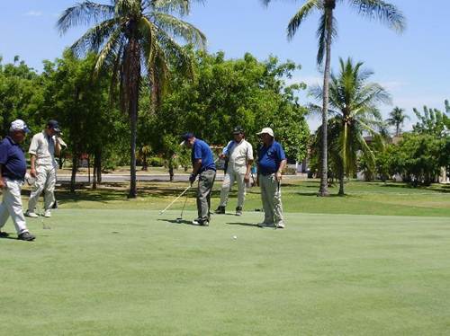 Para tan importante y grato torneo, se inscribieron 26 participantes del grupo ARRECIFES, con el cual se desea recordar y homenajear a un oficial naval querido y recordado, el Capitán de Navío Antonio Laborde Restrepo (QEPD), ahora más conocido como “Torneo de golf Toño Laborde”, que se realiza en el área de Melgar, organizado y dirigido por el Sr. Calm Luis Carlos Jaramillo Peña y el CN Héctor Porras. El día 21 de junio, a las 19:00 horas, con apetito y sed, en uno de los salones del segundo piso del Club Militar de Melgar, se reunieron los participantes con sus adorables dueñas, perdón… con sus señoras esposas, para celebrar el rencuentro, escuchar las instrucciones del Almirante Luis Carlos Jaramillo y atender los procedimientos, normas, preceptos, reglas, criterios, pautas y cobros del Capitán Porras. Luego fueron atendidos con exquisitas viandas y licores. Esa fue la inauguración que a la postre se notificó que pasaron “el corte” 17 valientes, madrugadores y también expertos jugadores.