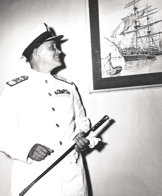 En Los Ángeles, fue al puerto y trató de vincularse a la US Navy. Como buen marino colombiano, fue bien recibido, pero se equivocó de lugar, debido a que el buque USS IWOA, desde hace 23 años está desactivado y es un museo. Entonces decidió posar frente a la unidad y retornar a la historia, donde recordó que es el único buque de la armada norteamericana con bañera, accesorio instalado para transportar al presidente Roosevelt junto con un ascensor para desplazarlo entre las cubiertas del acorazado. Cuando fue transferido a la Flota del Pacífico en 1944, el Iowa bombardeó las cabezas de playa en Kwajalein y Eniwetok en el avance de los desembarcos anfibios Aliados y dio cobertura a los portaaviones que operaban en las Islas Marshall. También fue buque insignia del almirante William F. Halsey en la rendición del Imperio del Japón en la Bahía de Tokio. Durante la Guerra de Corea el acorazado estuvo implicado en incursiones contra la costa norcoreana, tras lo que fue puesto fuera de comisión en la flota de reserva, conocida como «Flota de Almacenaje». Fue reactivado en 1984 como parte del plan de 600 barcos de la armada de los Estados Unidos y operó tanto en las Flotas del Pacífico como del Atlántico para contrarrestar la recientemente expandida Armada Soviética. En abril de 1989 una explosión de origen indeterminado destrozó su torreta nº 2 y mató a 47 tripulantes.