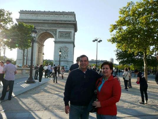 El CN Johnny Díaz /50-007 recorriendo los campos Eliseos con su adorable señora Martha Luz y posando frente al Arco del Triunfo