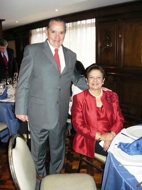 El CN Ricardo Rosero Erazo y su señora Mary Cardona, en el momento de iniciar elegante almuerzo en el Club Militar.
