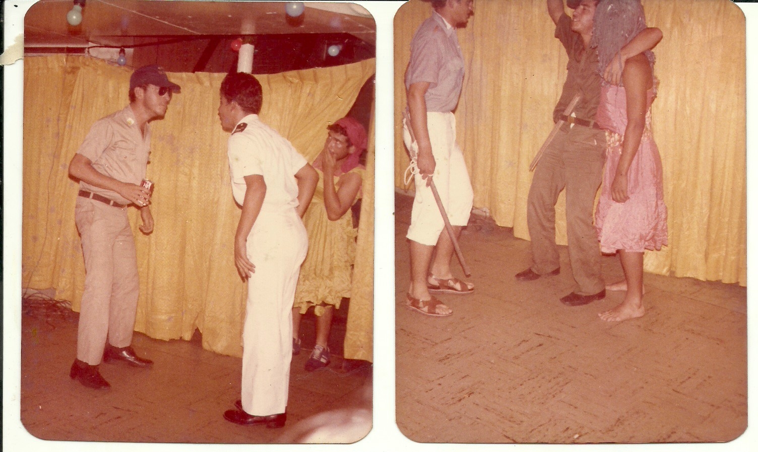 Y esta nuestra más memorable obra de teatro haciendo parodia sobre un incidente en Boston en el pañol de cabos donde no alcanzo a identificar a los actores pero de pronto el Va. AMAYA, el Ct. GALINDO, el My ECHEVERRY y el Cc. VIMOS nos puedan ayudar a reconocer estos grandes actores y nos ayuden a recordar sobre este evento.