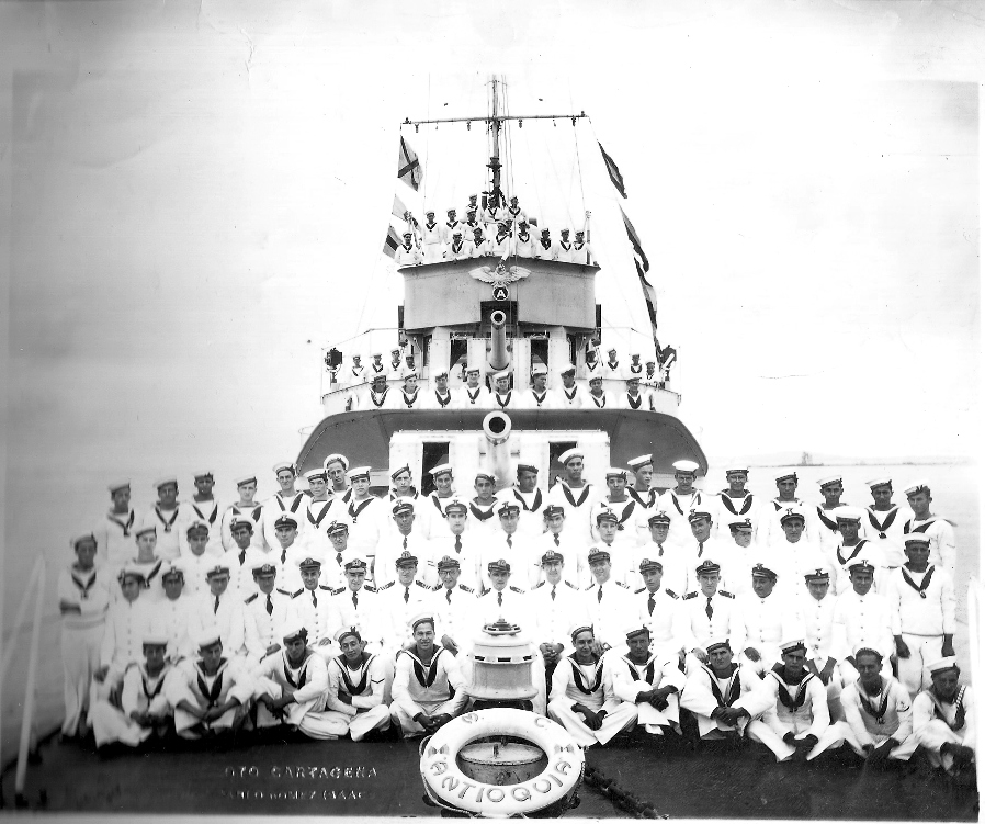A bordo del "MC Antioquia" teniente Guillermo Aldana B., sub teniente Ricardo Azuero V.,